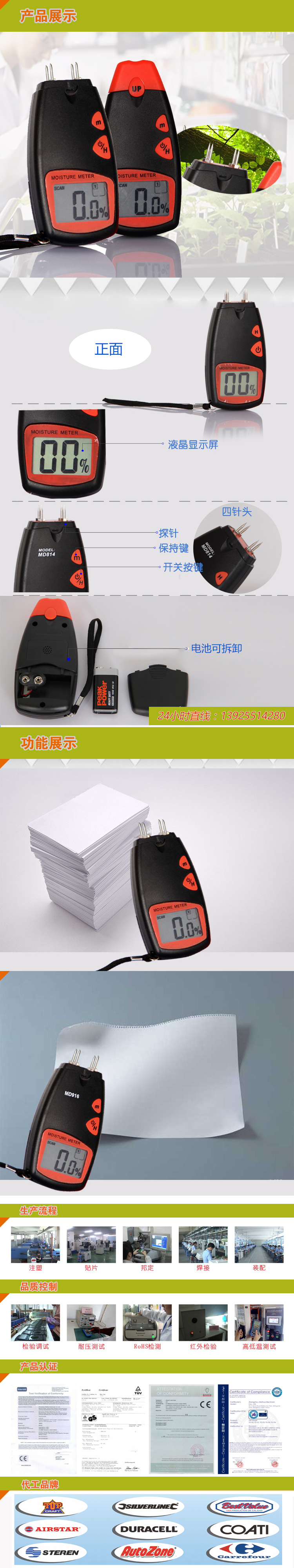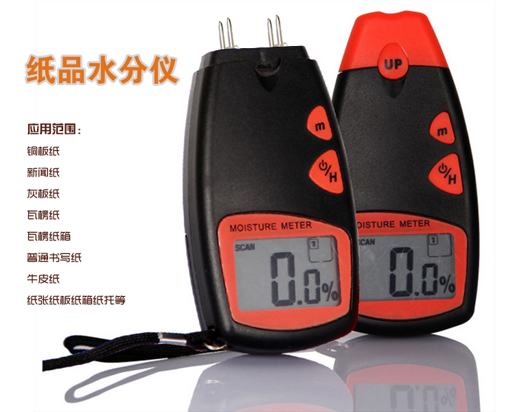 测量各种纸张、纸板、瓦楞纸、废纸、报纸、纸箱的水分含量。该水分仪精度高,超大液晶显示,水分快速测量,根据被测物不同多档种类自由选择。测量各种纸张、纸板、瓦楞纸、废纸、报纸、纸箱的水分含量。
